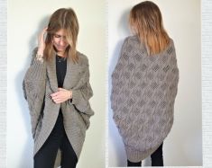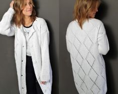 189 Strickanleitung Long Cardigan Strickjacke Karo