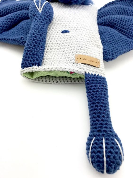 Mit dem angegebenen Garn (es wird mit doppeltem Faden gehäkelt) und der Nadelstärke 6mm wird der Wärmekissenbezug Kuschelschnuffelbande Fledermaus „Rupert“ insgesamt ca.48cm groß. Geeignete Wärmekissengröße ca.14cmx21cm