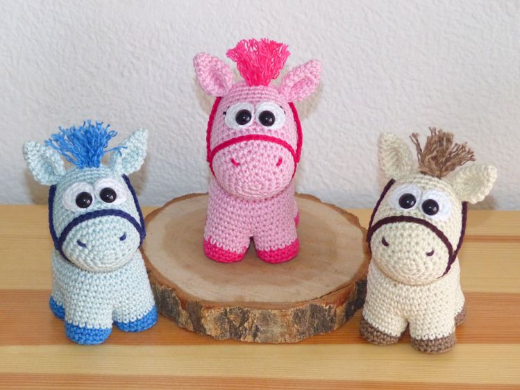Diese niedlichen Pferdchen sind das ideale Geschenk für jeden Pferdeliebhaber. Ob zum Geburtstag, zur Einschulung oder zu Weihnachten – die kleinen Pferdchen werden die Herzen der Beschenkten im Sturm erobern. Häkelt die süßen Pferde in den Lieblingsfarben von euch oder euren Liebsten und bringt damit viele Augen zum Strahlen. Die Pferdchen sind schnell gehäkelt und eignen sich perfekt als liebevolles Mitbringsel für jeden Pferdenarren.