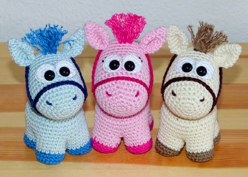 Je nach Garn- und Häkelnadelstärke variiert die Größe von den Pferden.