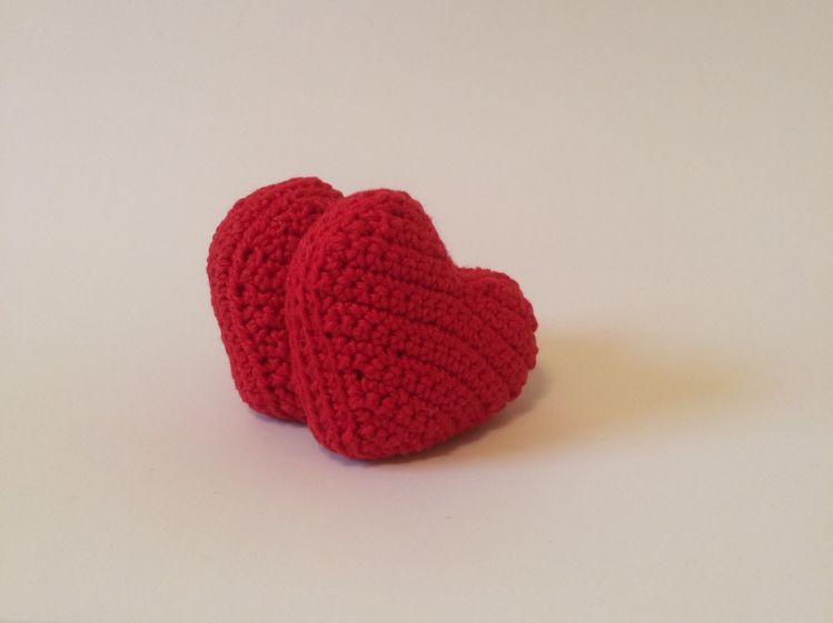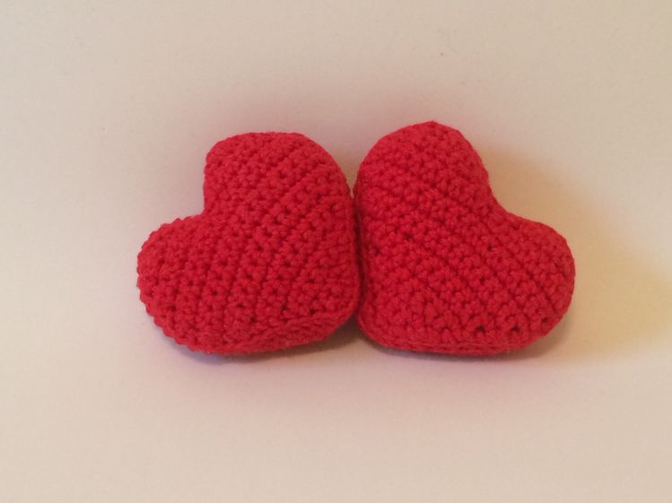 Die Herzen auf den Bildern wurde mit einer Wolle 50g/125m und einer Nadelstärke 2,5 gehäkelt.