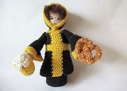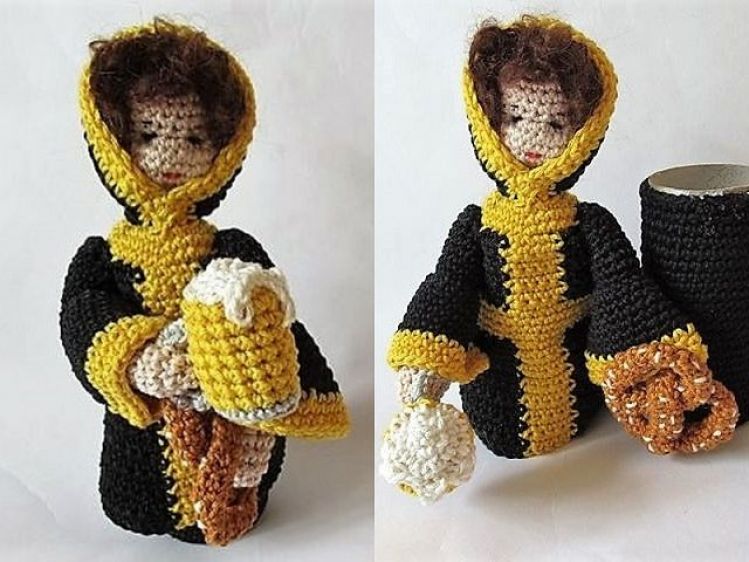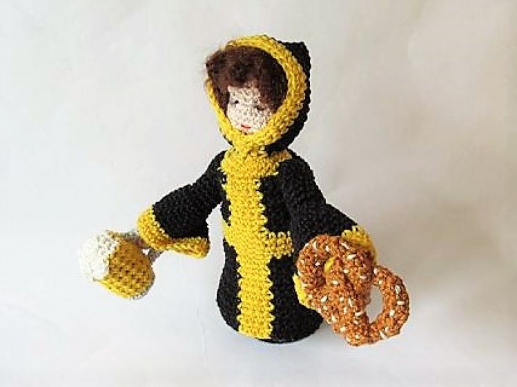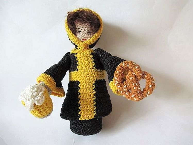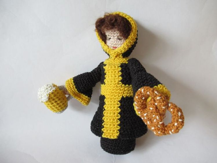 Das Münchner Kindl ist ein liebenswertes Wahrzeichen Münchens. Es trägt eine gelbschwarze Kutte und meist einen Maßkrug mit Bier. Das Oberteil meines Münchner Kindls kann abgenommen werden, so dass man in seinem Inneren eine kleine Überraschung verstecken kann.