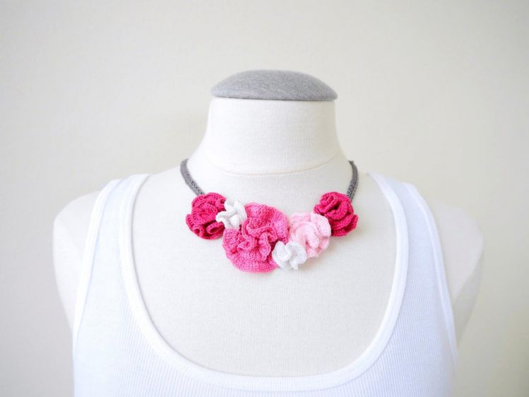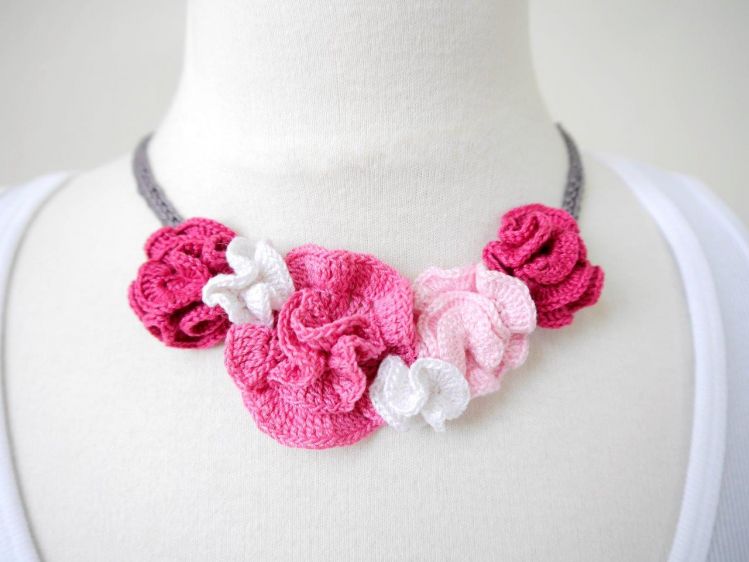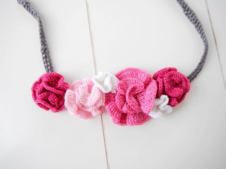 * für die Blumen: Häkelbaumwolle in Pink, Rosa, Hellrosa und Weiß mit einer Lauflänge von 280m/50g und Häkelnadel 2,0