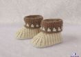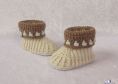 Als Blickfang dient hier sicherlich das Bündchen. Auch der Mittelteil des Schühchens wird die Blicke auf sich werfen. Unter dem Bündchen ist ein Bindeband versteckt, so können die Schühchen nicht so leicht vom Fuß gestrampelt werden.