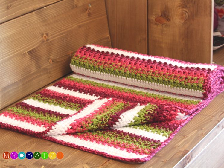 Die fertige Decke wird 80 cm x 100 cm groß.