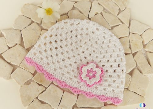 Diese Mütze ist perfekt für die Sommerzeit und garantiert ein Blickfang. Sie eignet sich gut als Geschenk zur Taufe, oder zur Geburt und auch für Fotoshootings. Das Lochmuster macht die Mütze luftig und leicht. Trotzdem ist sie ein Schutz gegen Sonneneinstrahlung.