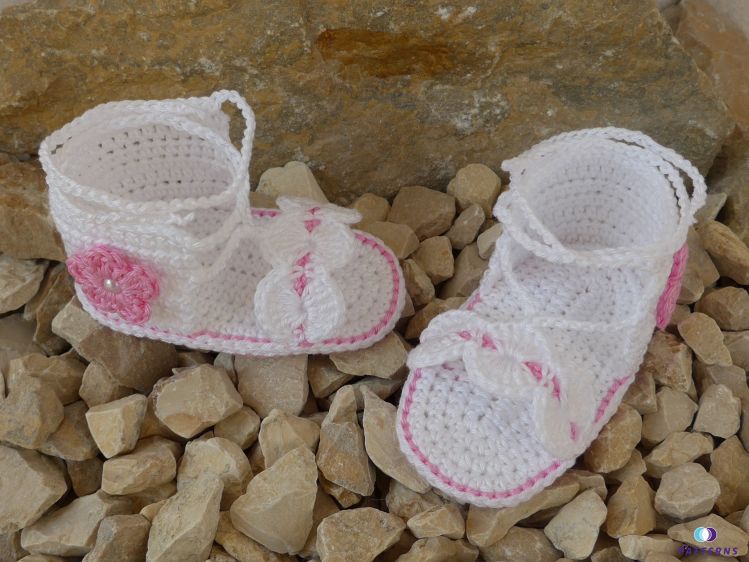 Diese Sandalen eignen sich perfekt für den Sommer. Damit sind auch die kleinen Babyfüße ausgestattet. Für kühlere Sommertage können auch Söckchen darunter getragen werden. Für einen besseren Halt wird ein Steg und ein Bändchen mit angebracht. Somit bleiben die Schühchen auch beim Strampeln am Fuß.
