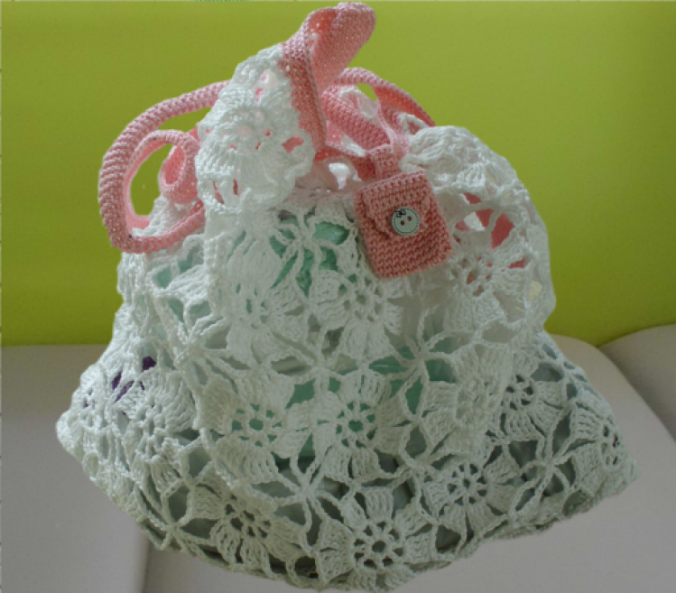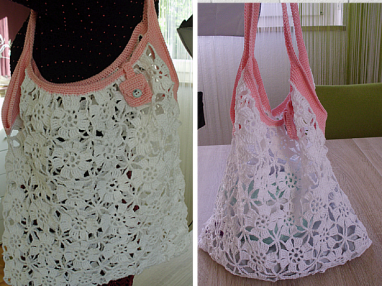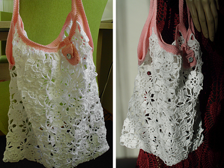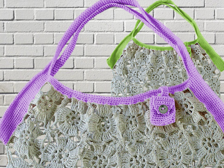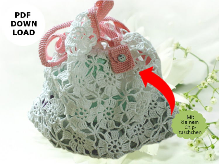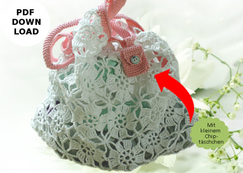 Häkelnetz aus Grannys zusammengesetzt mit extra Chiptäschchen