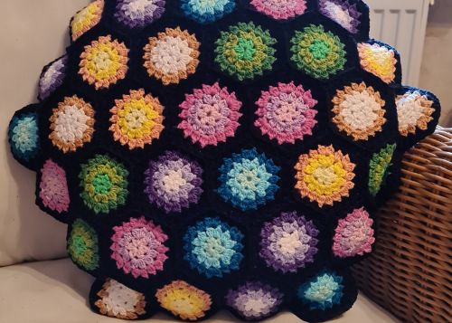Das Kissen besteht aus vielen Sechseck Granny´s.