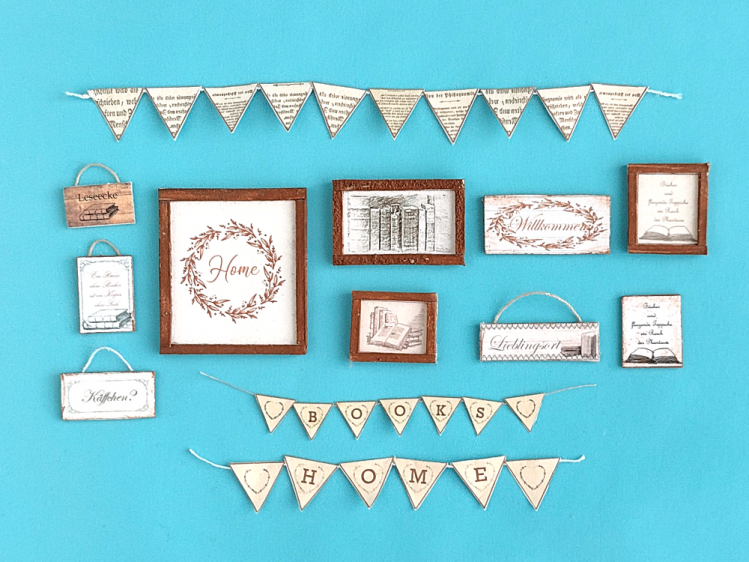 Mit diesen Bastelbögen kannst du eigene, kleine Buchattrappen und dekoratives Zubehör im Maßstab 1:12 erstellen.