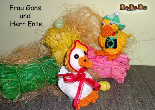ohne Flügel, Füße und Mütze sind die Ente, sowie die Gans schnell gehäkelt.
