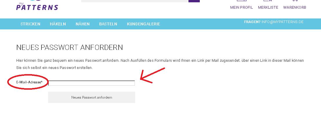 Sollte die Anmeldung nicht funktionieren, wende dich gerne an info@mypatterns.de.