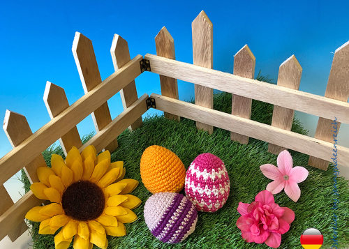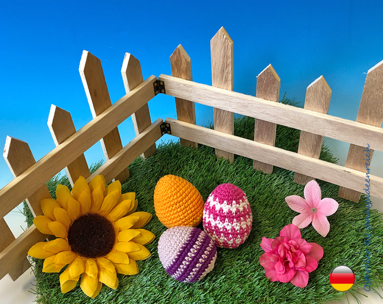 Ihr könnt hier die komplett ausformulierte Häkelanleitung zu den Ostereiern erwerben