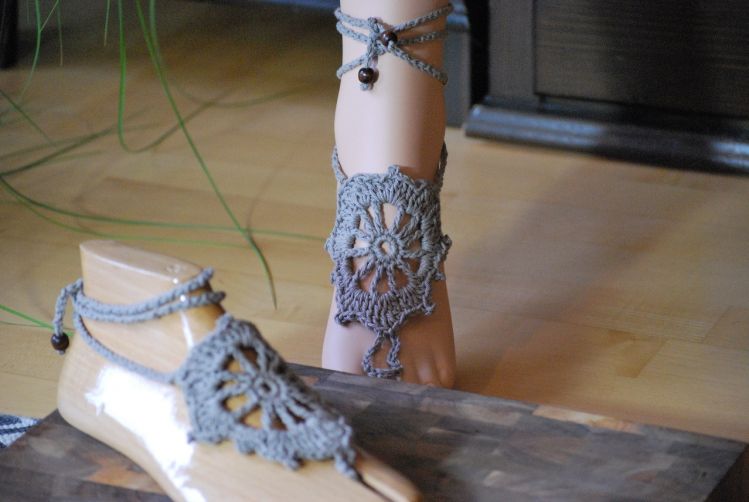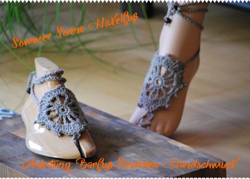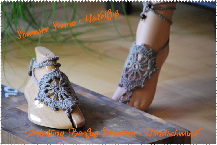 <p>Schnell gehäkelt sind diese sehr hübschen, aber eigentlich komplett überflüssigen Barfuß-Sandalen. Aber auch überflüssiges Beiwerk kann glücklich machen: Nicht nur an Füßen von Menschen, die sich dem Hippie- oder Boho-Style verschrieben haben, auch bei der Yoga-Praxis u.ä. hat sich der hübsche Fußschmuck bewährt, Strandspaziergänge machen doppelt soviel Spaß und auch Zuhause kann man wunderbar gesund barfuß laufen und trotzdem nicht ganz barfuß sein. <br> Barfußsandalen passen immer, wenn die Sonne scheint: zum Rock, zur Jeans, zu den Shorts oder eben am Strand zum Bikini... <br> Durch die verstellbaren Bänder passen sie nahezu allen Füßen, für normalgroße Damenfüße also bestens geeignet. Sind die Sandalen eher für größere Füße bestimmt, kann man die Länge der Zehenschlinge einfach um ein paar Maschen vergrößern (s. Anleitung).<br> Für diejenigen, die lieber richtige Schuhe mit Sohle tragen und trotzdem nicht auf dieses schöne Accessoire verzichten wollen: Die Modelle können auch als Handschmuck getragen werden...<br> Hier bekommt Ihr die Anleitung einer meiner Lieblings-Barfuß-Sandalen. Sie ist recht einfach in der Häkelei und nach nur 3 Runden in ca. 1 ½ Stunden fertig.<br> <br> Das e-book beeinhaltet eine schriftliche Anleitung und ein Häkelschrift-Schema.<br> <br> Häkelgrundkenntnisse: <br> Häkeln in Runden, Magic Ring, Kettmaschen, Luftmaschen, feste Maschen, Stäbchen und Doppelstäbchen <br> hier verwendetes Material: <br> 20g 100% Baumwollgarn, (LL ca, 120m per 50g),<br> (hier „Drops“ loves You No.6, recyceltes BW-Garn), <br> Häkelnadel No. 3,5 <br> 4 Holzperlen nach Wahl<br> <br> © by Häkelinski 2017<br> Hinweise zum Copyright: Bleibt fair: die Kreation des Modells und das Erstellen dieser Anleitung haben sehr viel Zeit und Arbeit benötigt. Aus diesem Grund sind Weitergabe, Tausch, Verkauf, Vervielfältigung, Übersetzung und Veröffentlichung (einschließlich Veröffentlichung im Internet) der Anleitung bzw. der Bilder oder Auszüge aus der Anleitung nicht gestattet. Sie sind nur für den privaten Gebrauch. Eine Rückgabe der Anleitung ist ausgeschlossen. Fertige Modelle dürfen im Internet nicht verkauft werden; auf Märkten dürfen sie in beliebiger Anzahl verkauft werden, gerne mit dem Hinweis „nach einer Anleitung von Häkelinski“.</p>