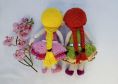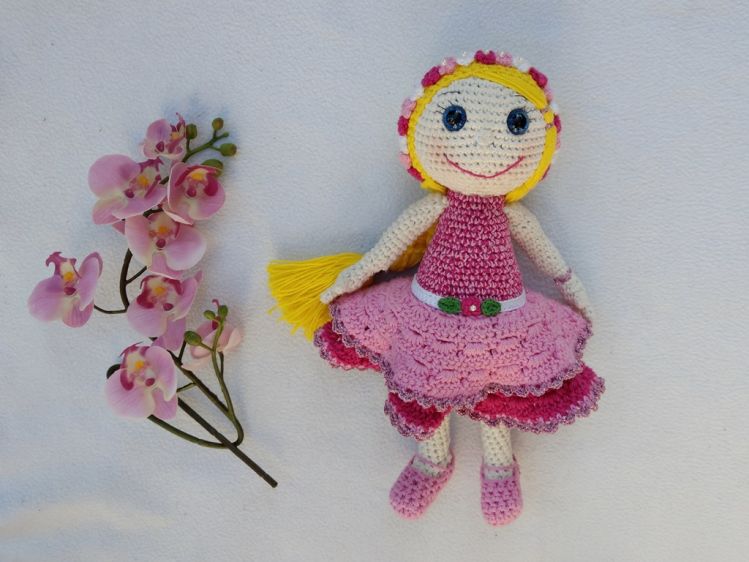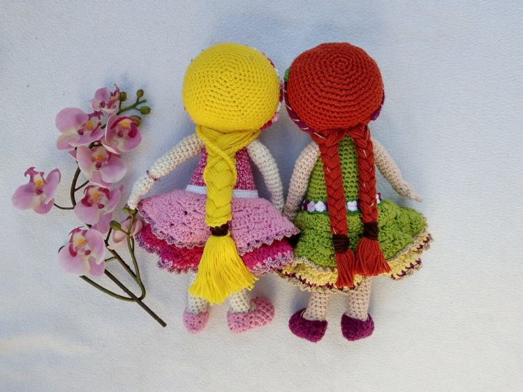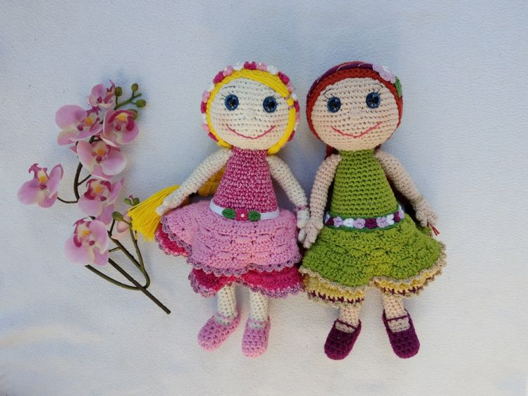 Gehäkelt habe ich die Blumenmädchen mit der Schachenmayr Catania Originals und Häkelnadel Nr. 2 und Nr. 4. Sie werden ca. 35 cm hoch.