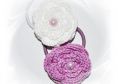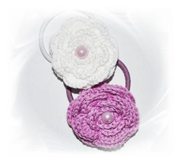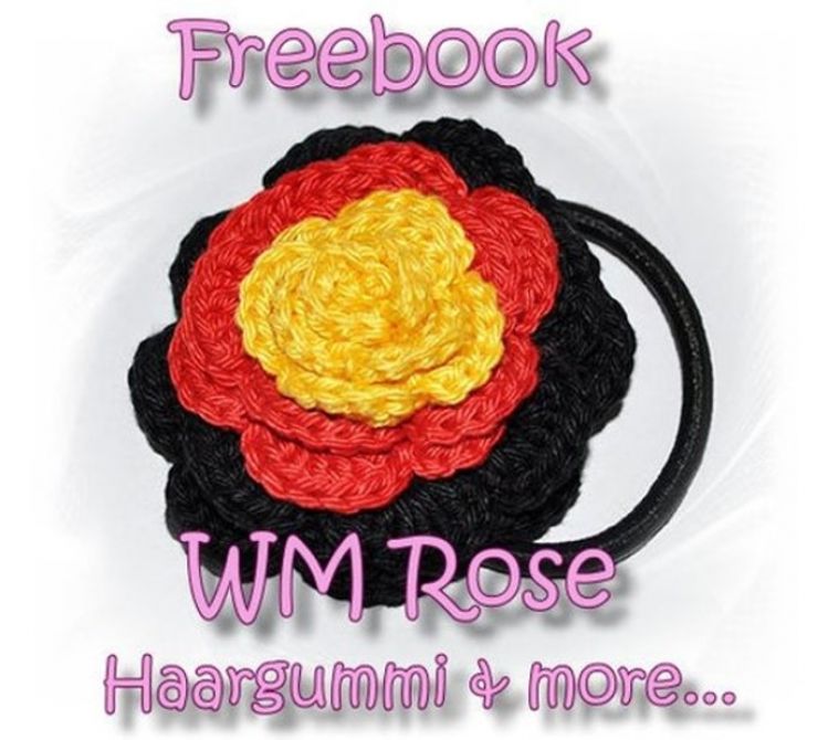 Eine zauberhafte Häkelrose in 3 verschiedenen Farben. Ich erkläre es an Hand der WM Rose welche man als Haargummi oder Haarspange oder Ansteckblume oder Blume für Haarreifen oder…… nutzen kann.