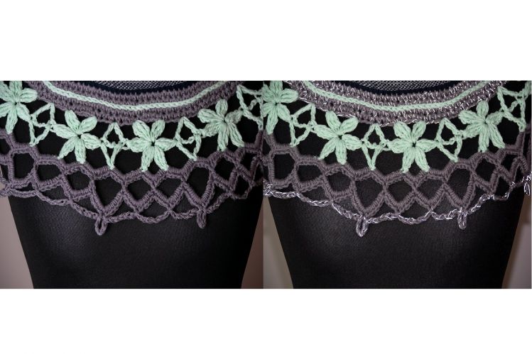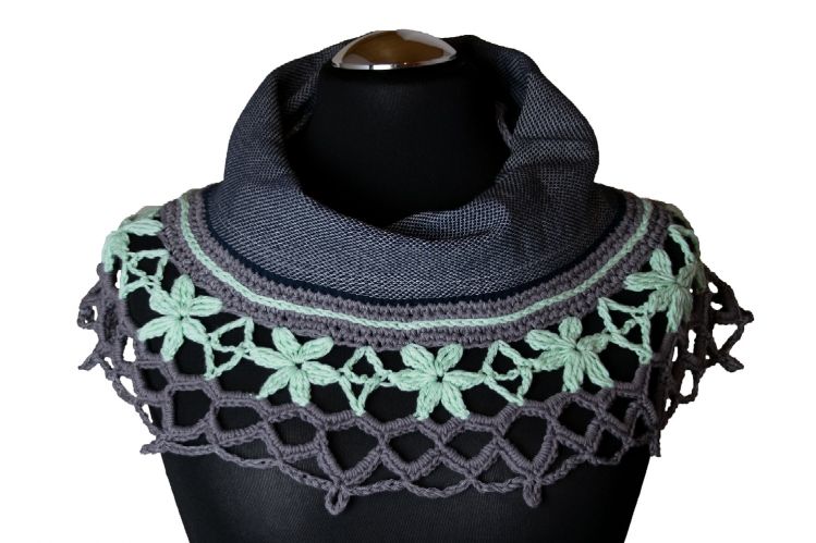 Der Cowl kann mit einem MyBoshi Loop gearbeitet werden, aber auch mit jedem anderen beliebigen Strick-, Häkel- oder Stoff-Schlauch, den du magst. Wichtig ist nur, dass die Maschenzahl bei der ersten Reihe stimmt.