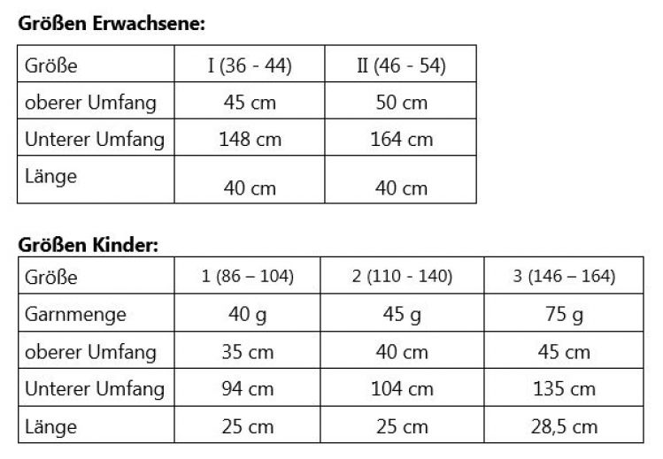 Sockengarn 4-fach, von 40 g in Größe 86 bis zu 100 g für Gr. 54