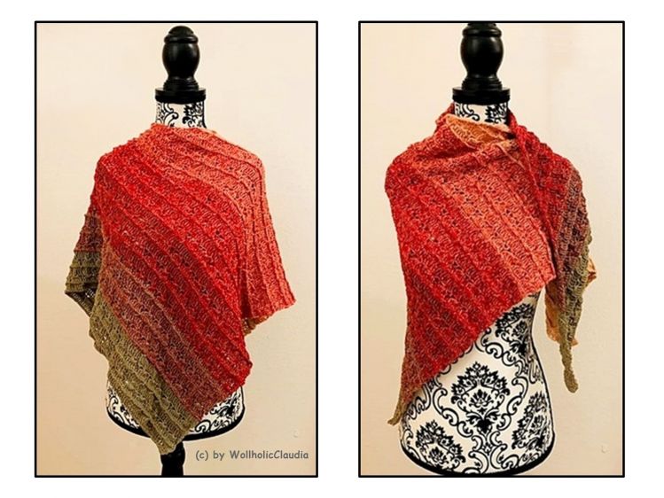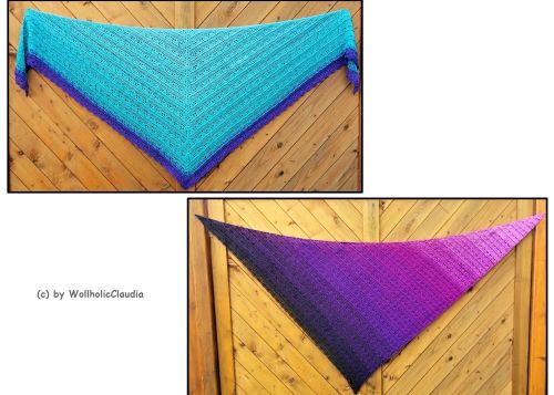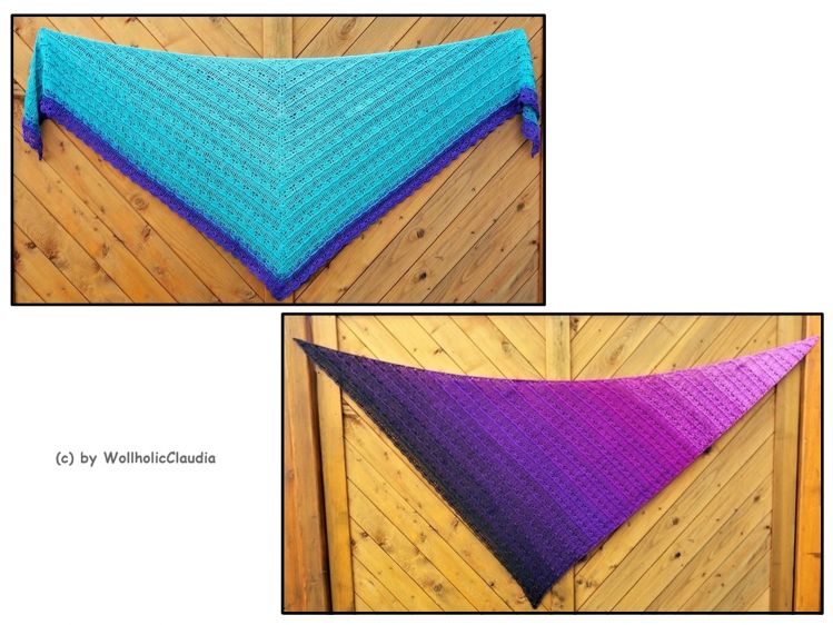 Jeder Wollholicer kann sich bei diesem Tuch austoben, denn es ist in jeder beliebigen Größe machbar, so bleibt kein Garn übrig. Ob als klassisches Dreieckstuch oder die asymetrische Variante, dieses Muster hat einfach Suchtfaktor.