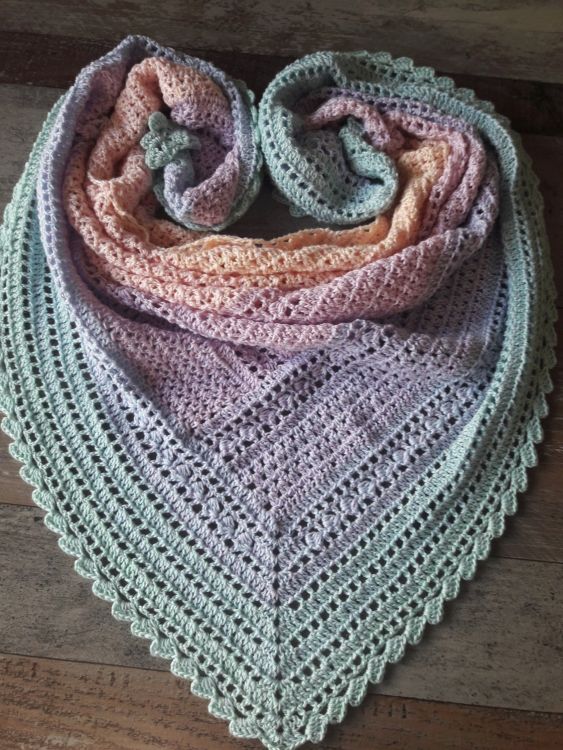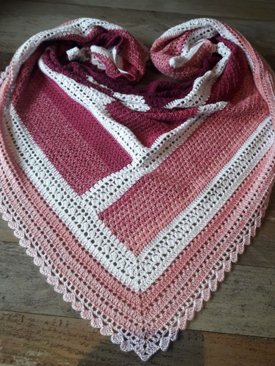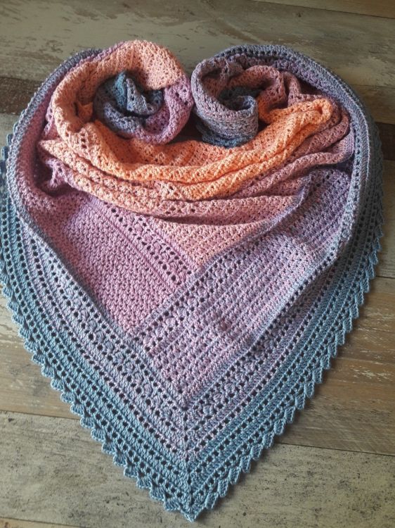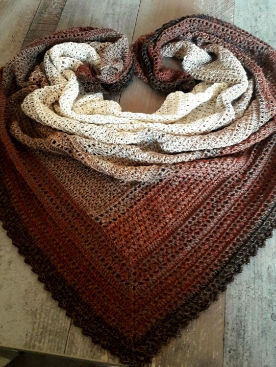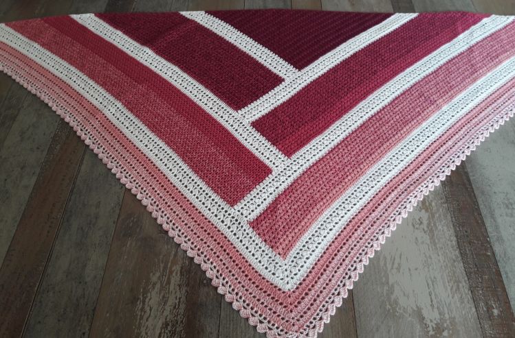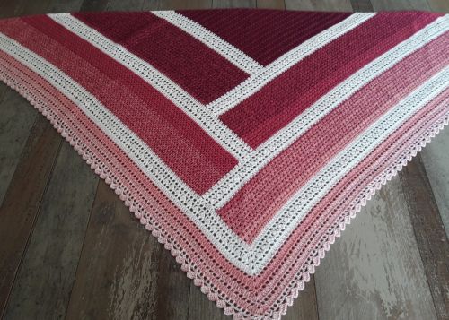 „Anders“ ist ein symmetrisches Dreieckstuch, das mit mehreren Richtungswechseln gehäkelt wird. Die verschiedenen Teile haben nicht nur unterschiedliche Richtungen, sondern auch jeder ein anderes Strukturmuster. Eine Bordüre wiederholt sich in jedem Abschnitt und trennt gleichzeitig die einzelnen Teile optisch. Durch die unterschiedlichen Muster wird es nie langweilig.