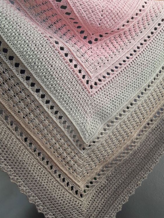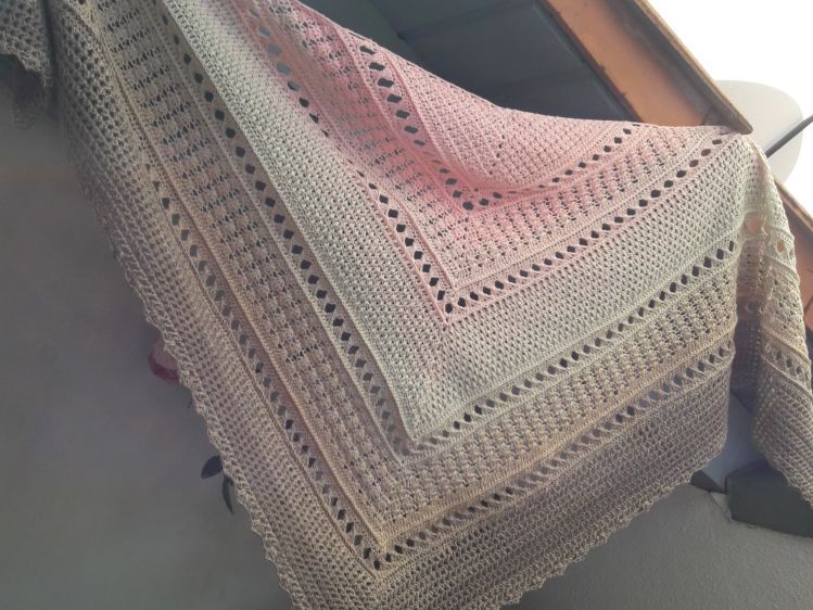 Das Tuch hat eine Spannweite von 162cm und ist 72cm tief.