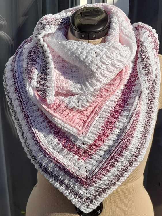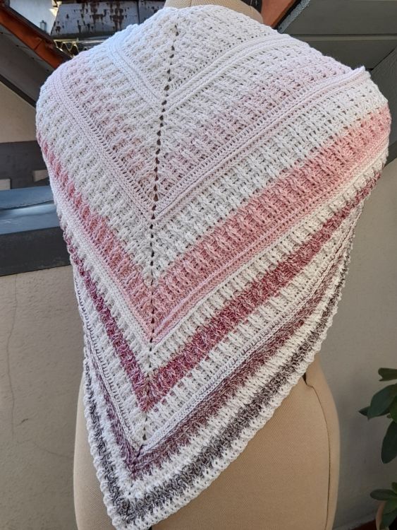 Mit der Anleitung Valentina kannst Du dir ein klassisches Dreieckstuch häkeln, das dir nicht nur an kühlen Abenden im Frühling oder Sommer die Schultern wärmt, sondern das Du auch ganz lässig als Schal tragen kannst. Die moderne Optik entsteht durch vordere und hintere Reliefstäbchen, die ein Rippenmuster aus längs und quer Rippen bilden.