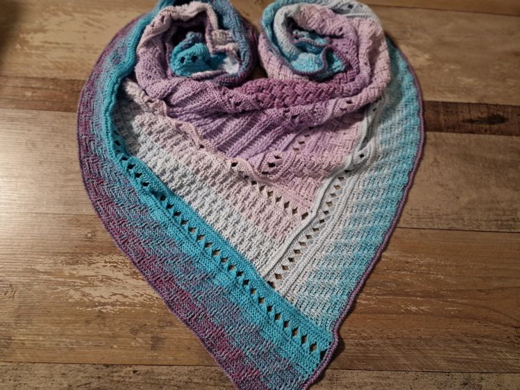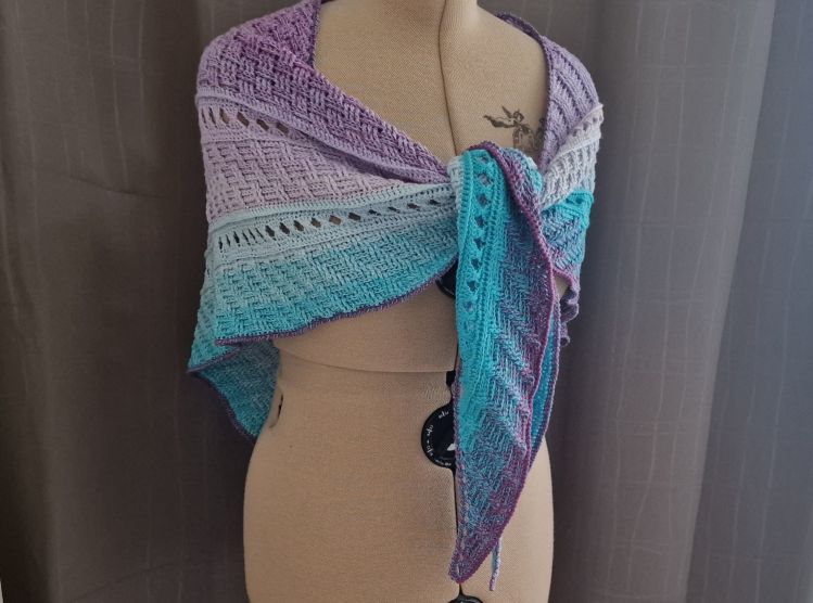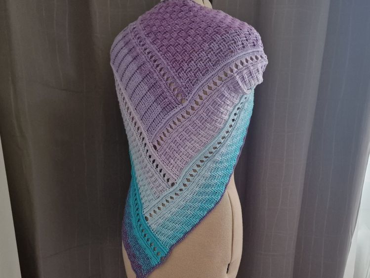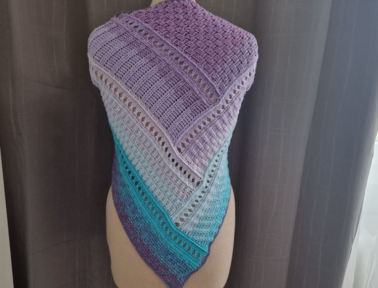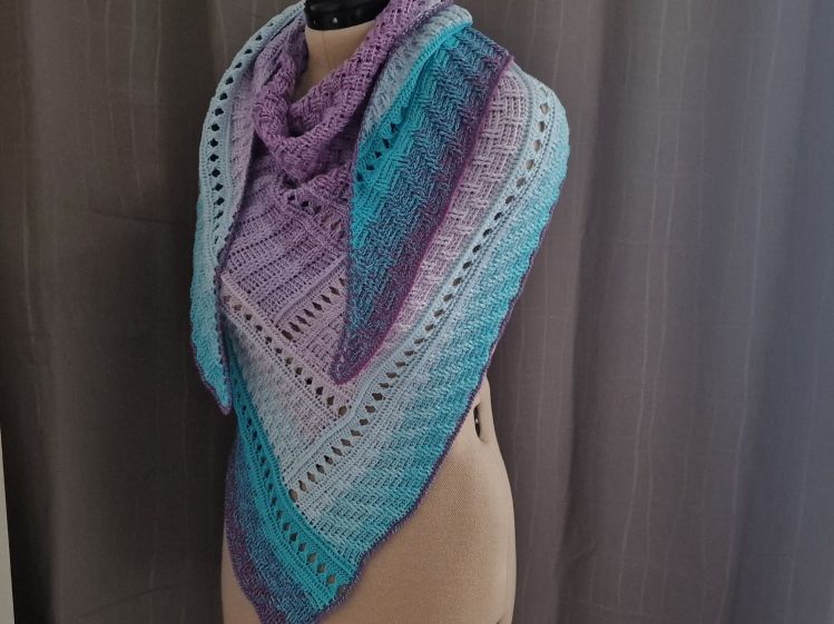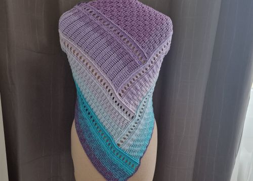 „Anders“ ist ein nicht vollkommen symmetrisches Dreieckstuch, das mit mehreren Richtungswechseln gehäkelt wird.