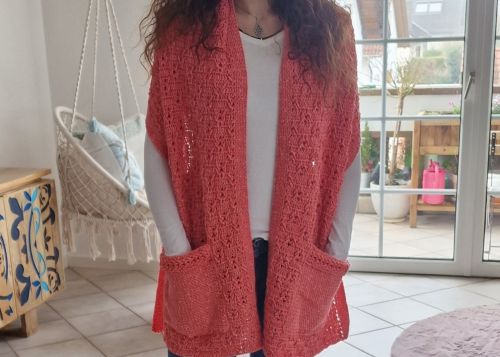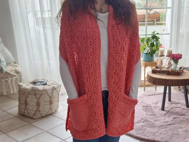 Das Schalmuster besteht aus Stäbchen, die mit doppelten Reliefstäbchen überkreuzt werden. Sie werden nicht nur in den Hinreihen überkreuzt, sondern auch in den Rückreihen und das ist etwas tricky. Du solltest eine geübte und schon relativ fortgeschrittene Häklerin sein.