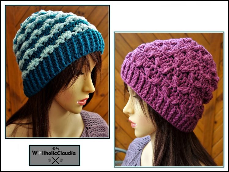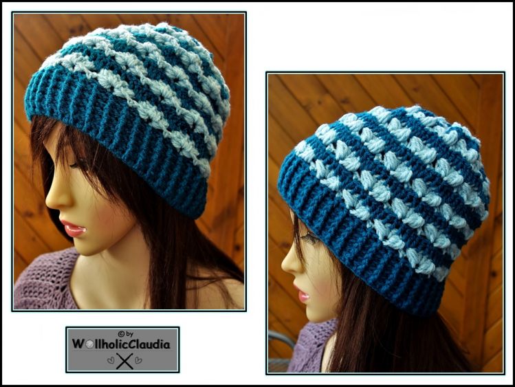 Mütze "Winterzeit" - eine Anleitung - 2 Mützen. Durch die Anordnung der verschiedenen Maschen ensteht dieses hübsche Muster, welches von beiden Seiten einfach toll aussieht.