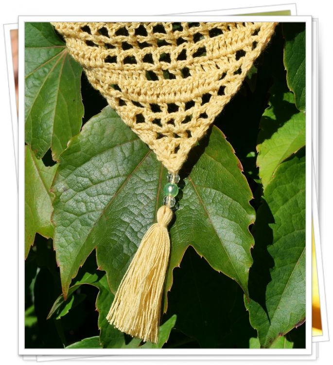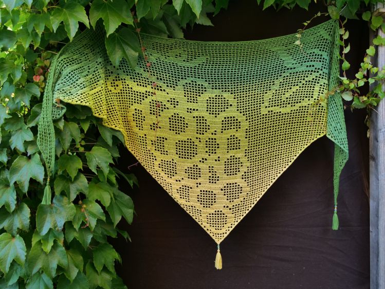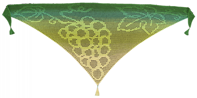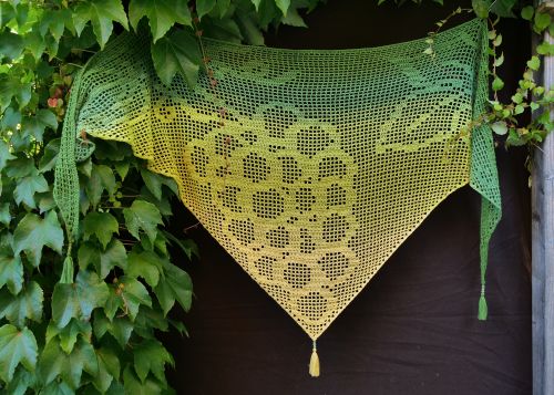 Unser Motivhäkeltuch “Weinranken” ist ein gehäkeltes Dreiecktuch.