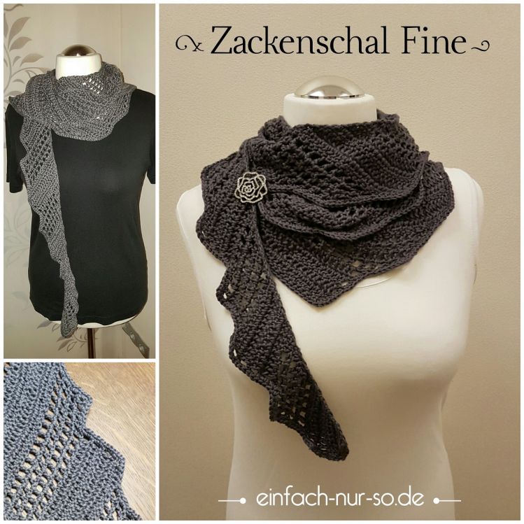 Fine ist ein schmaler Zackenschal, der durch seine schmale Form viele Tragevarianten bietet.