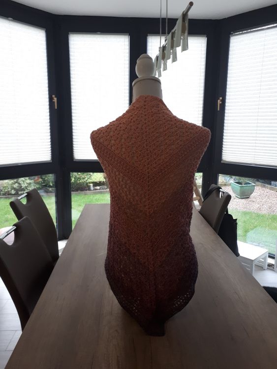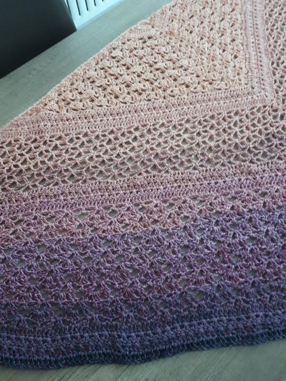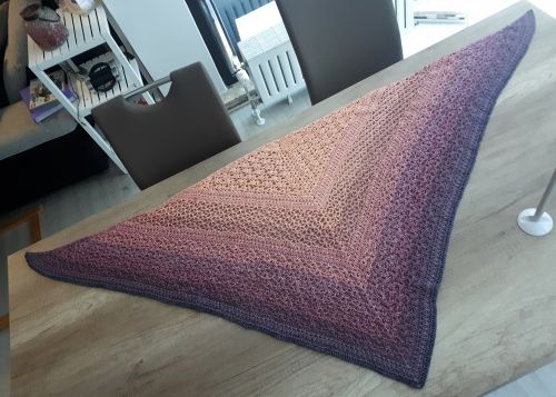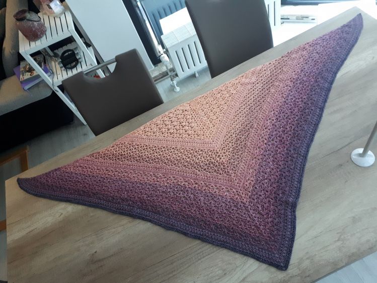 Für dieses Dreieckstuch habe ich 1000lm in 4 fädiger Stärke benötigt. Gehäkelt wurde dieser mit Nadelstärke 3,5. Ihr könnt aber auch mehr Laufmeter nehmen und einfach um Mustersätze erweitern.