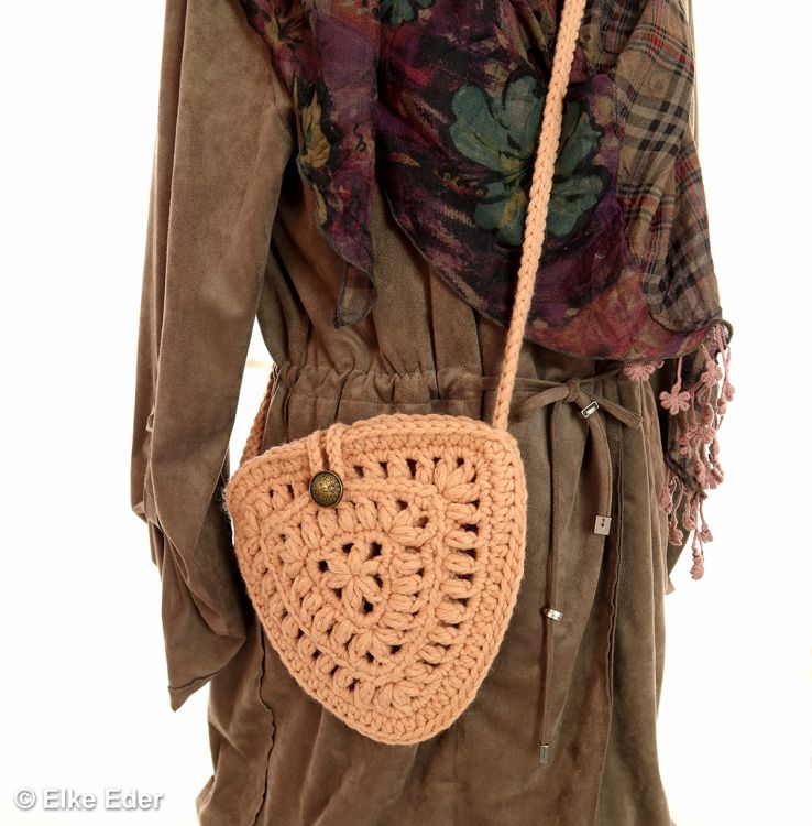 Hier verwendet: Tasche einfarbig: 2 - 3 Knäuel in Farbe Puder (exakt 98 Gramm – um sicher zu gehen, dass die Wolle reicht, würde ich hier 3 Knäuel empfehlen)