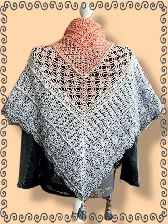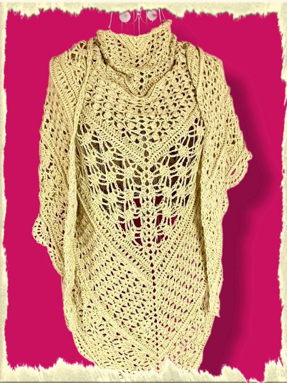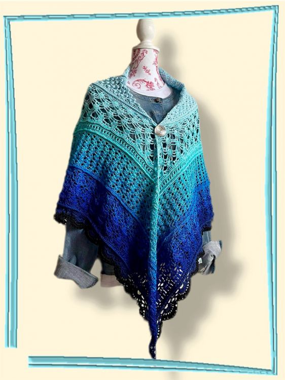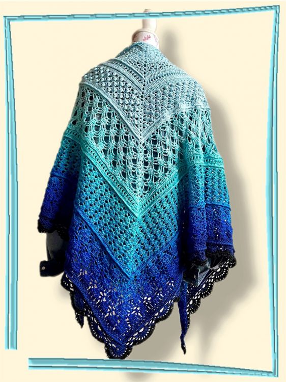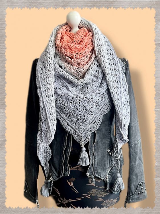 Häkelanleitung für ein großes, wunderschönes Dreieckstuch mit vielen interessanten Mustervarianten und einer Bordüre die das ganze Tuch abrundet.