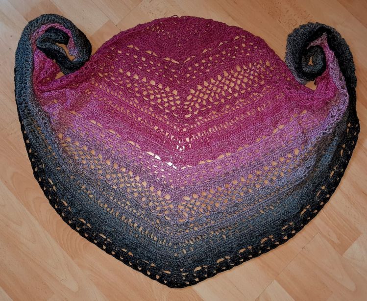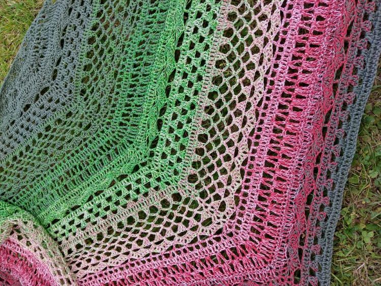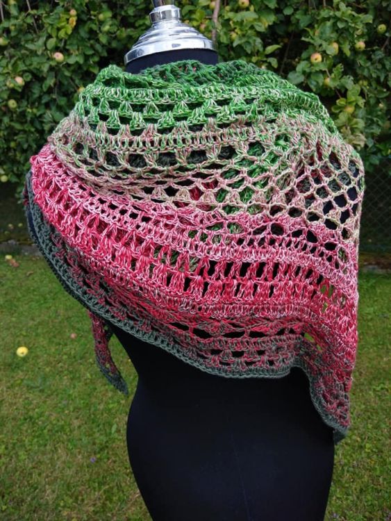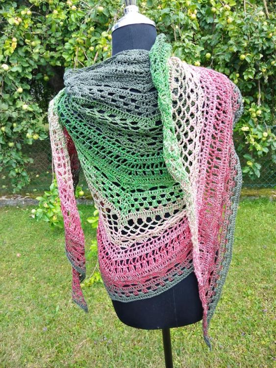 Als mein Team dieses Muster sah, sagten sie unabhängig voneinander „Cool, mal was luftiges“. Somit wurde dieses wunderschöne Tuch auf den Namen „Aireada“ getauft. Das Aireada ist ein flaches Dreieckstuch.