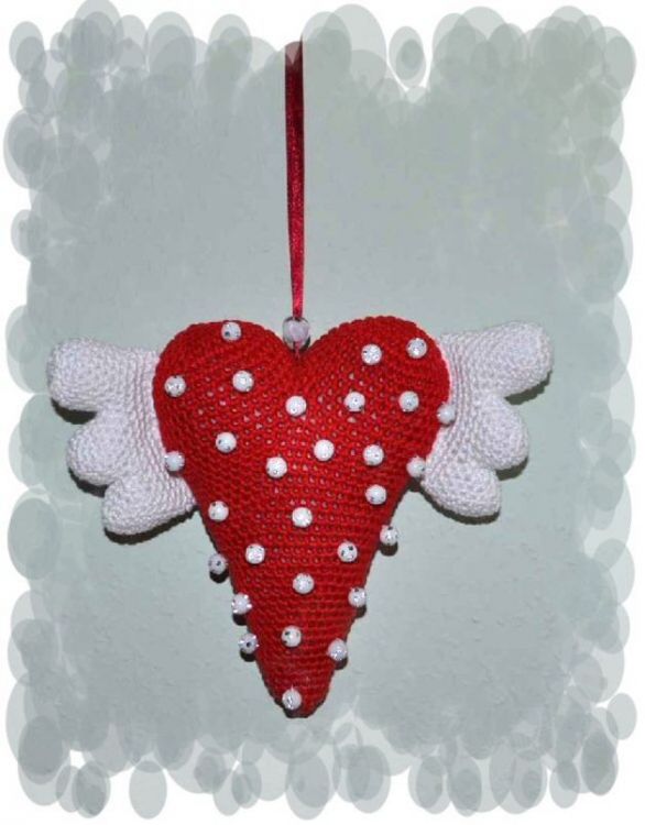 Wer mag keine Herzen und hier kommt ein geflügeltes Herz geflogen in gehäkelter Form. Es macht sich wunderbar als Dekoration oder als Geschenk was von Herzen kommt. Ideal auch als kleines Mitbringsel zu Feiertagen oder besonderen Anlässen. Das Herz hat fertiggestellt eine Höhe von 17cm.