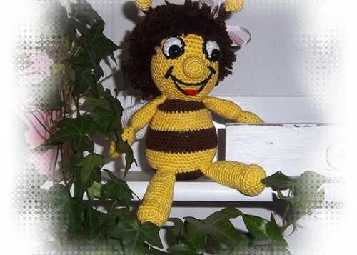 Im Frühling und Sommer sieht man sie überall, die fleißigen Bienen. Eine von den emsigen Tierchen kannst Du Dir nun nach Hause holen aber ob sie auch so fleißig ist weiß ich nicht auf jeden Fall sorgt sie mit ihrem frechen Lachen immer für gute Laune – die kleine Freche Biene Pauline. Biene Pauline wird ca. 27cm groß unter Anwendung des angegebenen Materials.