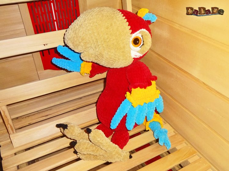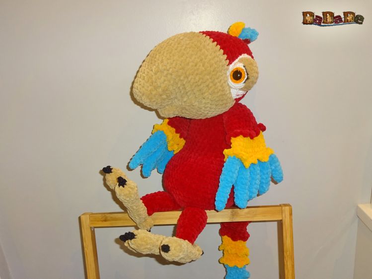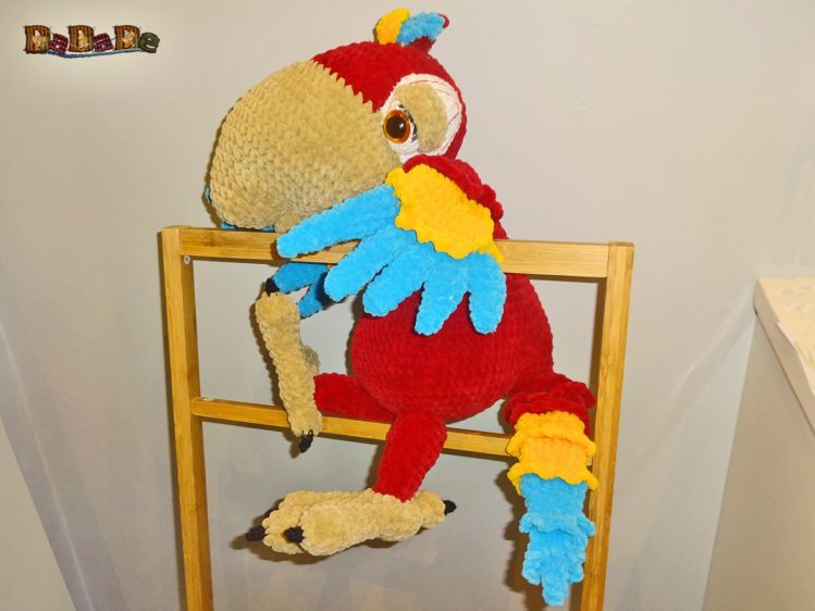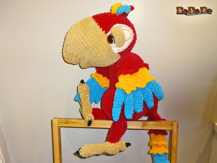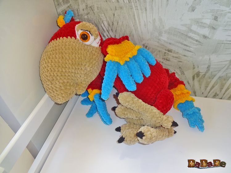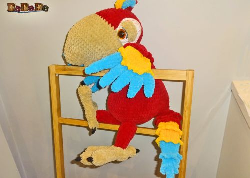 Sie kaufen hier die Anleitung von Ara-Bella, dem Papagei, Sie ist mit der flauschigen Samtwolle von myboshi gehäkelt,
