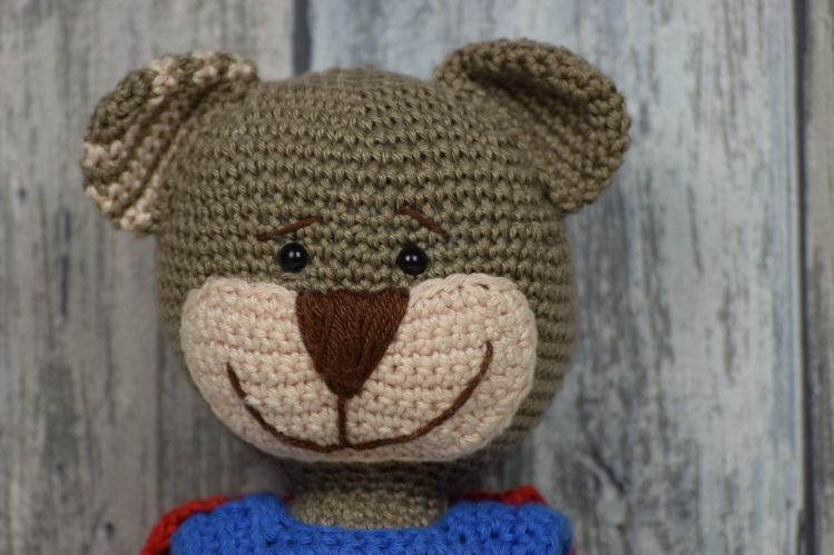 Bruno wird mit Baumwollgarn ( LL125/50g) und einer Häkelnadel 2.5 ca.30 cm groß. Um Bruno häkeln zu können, benötigt man folgende Kenntnisse: