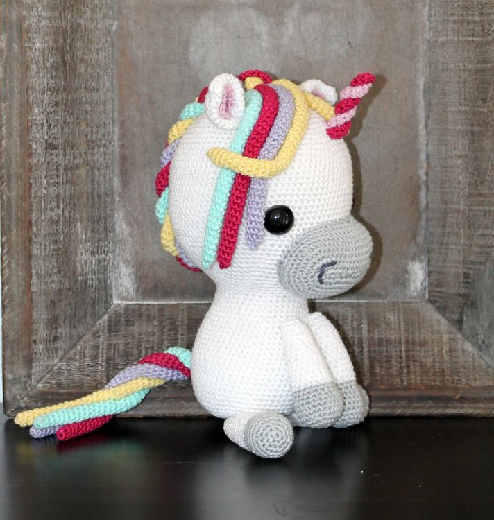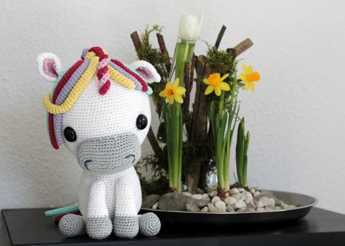 Das fertig gehälte Einhorn darf gerne weiter verkauft werden, solange ein Link zu der Anleitung beiliegt und ein Hinweis: "Gehäkelt nach einer Anleitung von Masche-fuer-masche!"