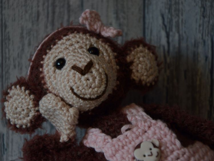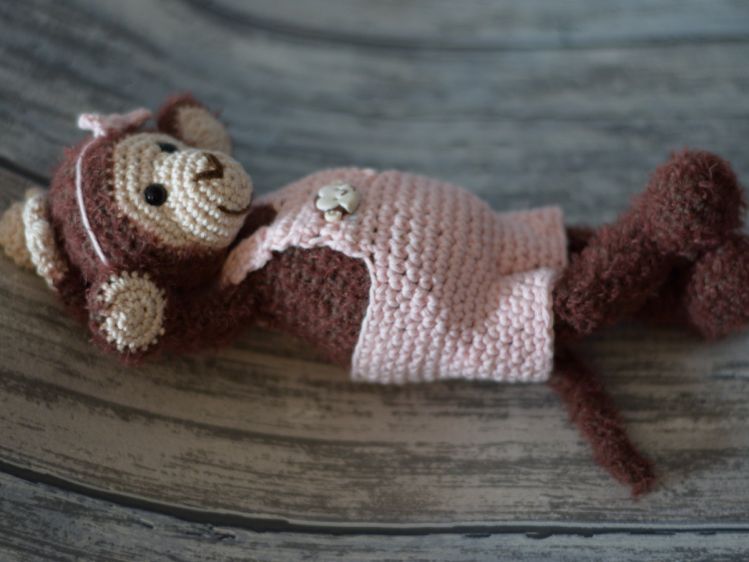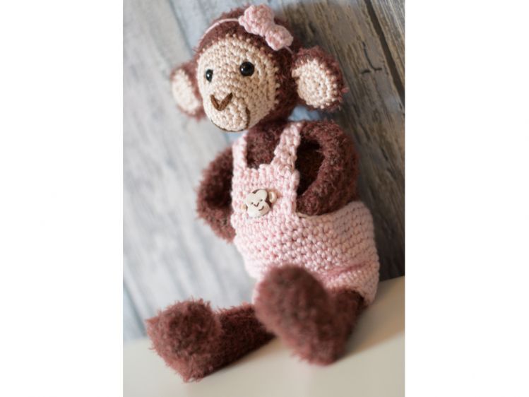 Emma ist ein kleines quirliges Affenmädchen das ist immer fröhlich ist und voller lustiger Ideen ist.. Sie ist neugierig und klettert für ihr Leben gerne ! Emma ist ideale Begleiterin durch dick und dünn. Mit dem Flauschgarn und einer Häkelnadel 2,5 wird Emma ca. 24 cm hoch. Die Anleitung ist ausführlich bebildert und eignet sich so auch für Anfänger.