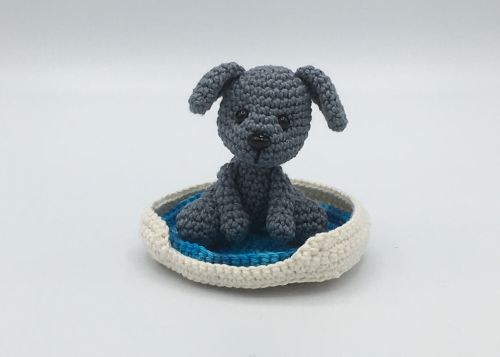 Mit dieser Anleitung kannst du dir deinen eigene kleinen Hund Mäxchen häkeln. Die Anleitung beinhaltet neben dem Hund auch ein kleines Hundekörbchen.