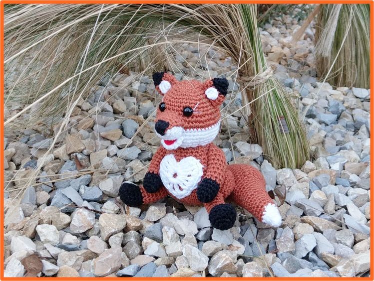 Auf 14 Seiten und 46 Fotos erkläre ich Dir die Nacharbeitung von dem abgebildeten kleinen Fuchs. Willi wird mit angegebenem Garn ca. 11 cm groß (mit Ohren)