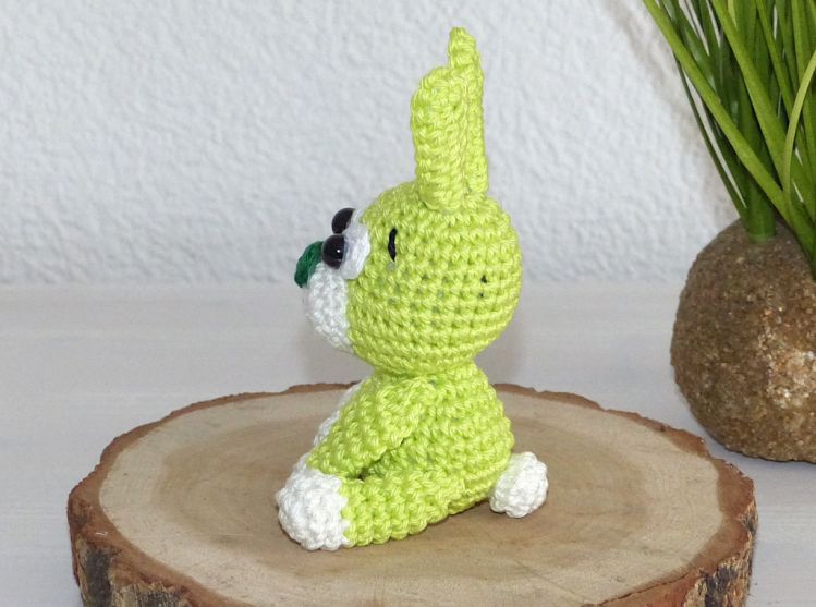 Je nach Garn- und Häkelnadelstärke variiert die Größe von den Hasen.