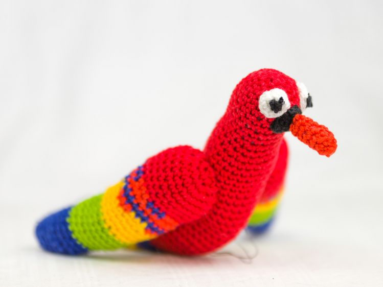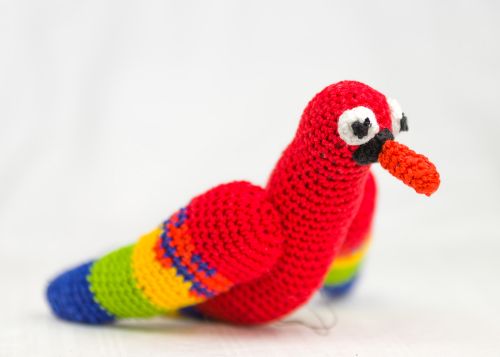 Der kleine farbenfrohe Papagei Chili fühlt sich am wohlsten, wenn er in einer Palme oder einer anderen Blume sitzen darf. Chili ist ganz schnell gehäkelt und kann auch von Anfängern problemlos nachgearbeitet werden.