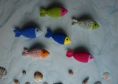 Die kleinen Fische möchten gerne euer Leben bunter machen. Ob als Schüsselanhänger, Taschenbaumler, Glücksbringer, Katzenspielzeug, Geschenk zur Taufe, Kinderkommunion, Konfirmation oder kirchlichen Hochzeit - die kleinen Fische sind schnell gemacht und vielfältig einsetzbar.