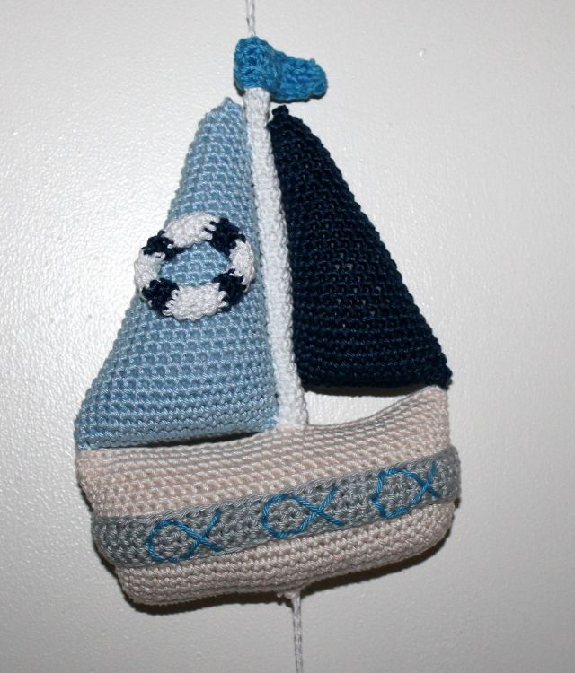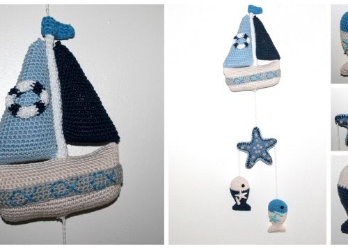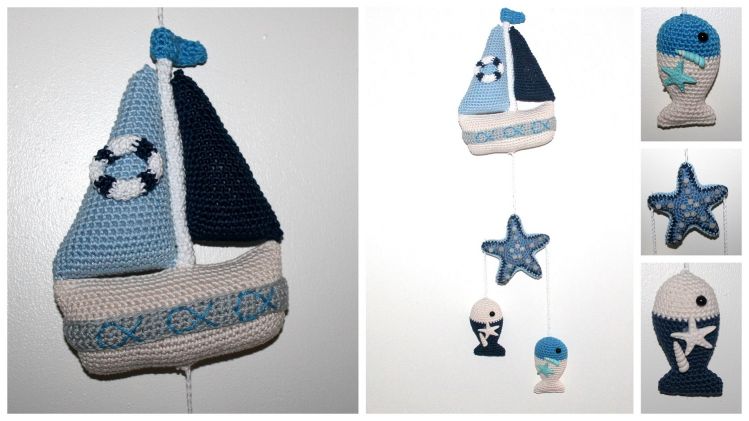 Die Anleitung beschreibt alles, um das Schiff, die Fische und den Seestern zu häkeln.