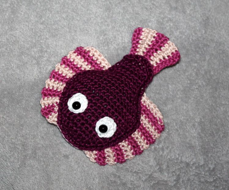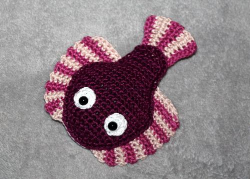 Die Flunder wird fertig gehäkelt ca 20cm groß, kann aber natürlich je nach Nadelstärke und Garn abweichen.
