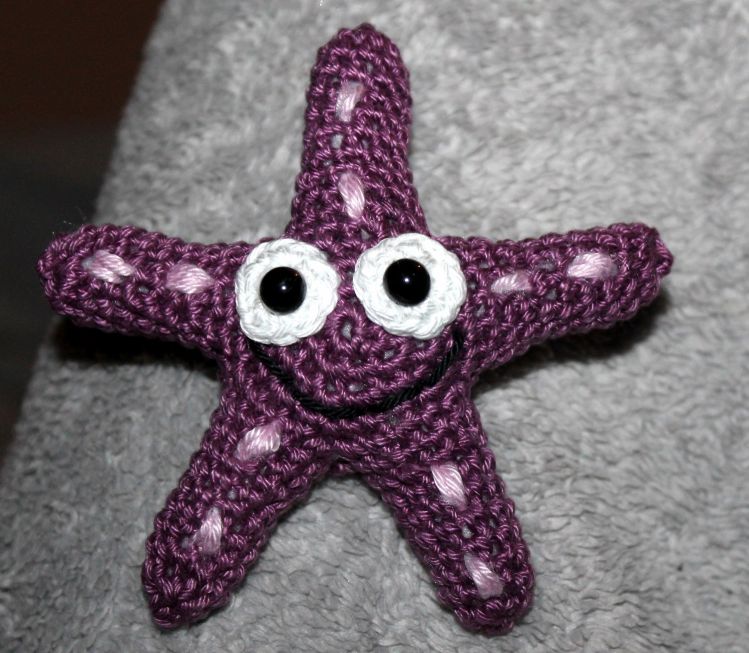 Der wird Seestern fertig gehäkelt ca 15 cm groß, kann aber natürlich je nach Nadelstärke und Garn abweichen.