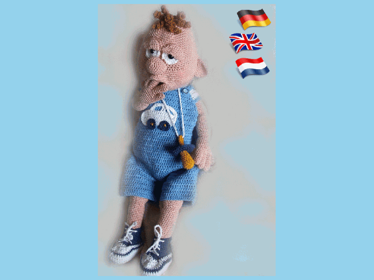 * De pop wordt (bij gebruik van haaknaald 3) 50 cm groot.